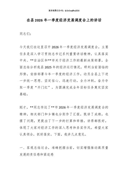 【七哥公文】2026年:在县2026年一季度经济发展调度会上的讲话_副本+更多免费公文+VX:QiGeGongWen2024