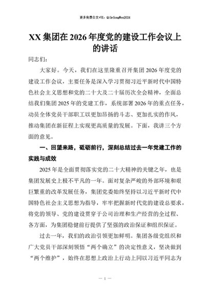 / 【七哥公文】2026年:XX集团在2026年度党的建设工作会议上的讲话+更多免费公文+VX:QiGeGongWen2024
