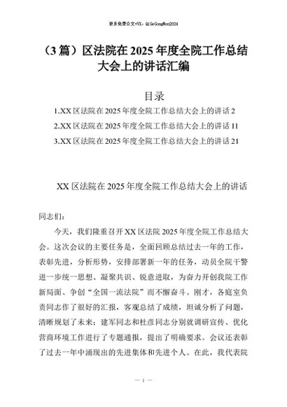 【七哥公文】2026年:(3篇)区法院在2025年度全院工作总结大会上的讲话汇编+更多免费公文+VX:QiGeGongWen2024