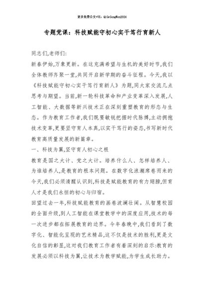 / 【七哥公文】2026年:专题党课:科技赋能守初心实干笃行育新人_副本+更多免费公文+VX:QiGeGongWen2024