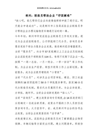 / 【七哥公文】2026年:彬州:联络员帮助企业“纾困解难”_副本+更多免费公文+VX:QiGeGongWen2024