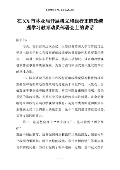 【七哥公文】2026年:在XX市林业局开展树立和践行正确政绩观学习教育动员部署会上的讲话+更多免费公文+VX:QiGeGongWen2024