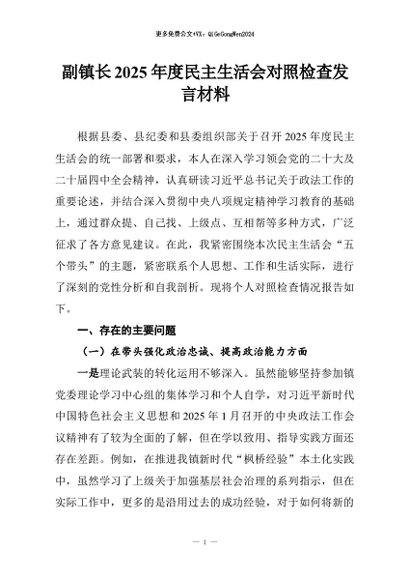 / 【七哥公文】2026年:副镇长2025年度民主生活会对照检查发言材料+更多免费公文+VX:QiGeGongWen2024