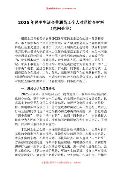 【七哥公文】2026年:2025年民主生活会普通员工个人对照检查材料(电网企业)+更多免费公文+VX:QiGeGongWen2024