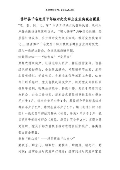 【七哥公文】2026年:佛坪县千名党员干部结对交友群众企业实现全覆盖_副本+更多免费公文+VX:QiGeGongWen2024