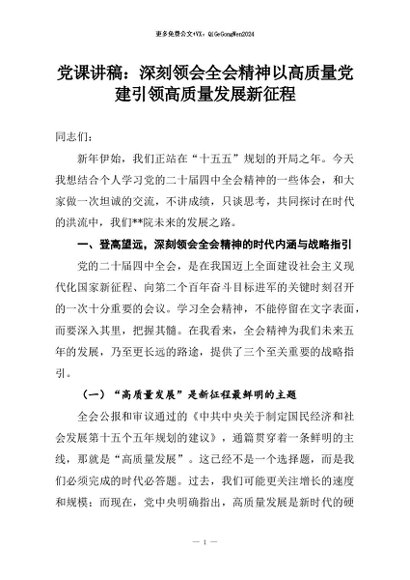 【七哥公文】2026年:党课讲稿:深刻领会全会精神以高质量党建引领高质量发展新征程+更多免费公文+VX:QiGeGongWen2024