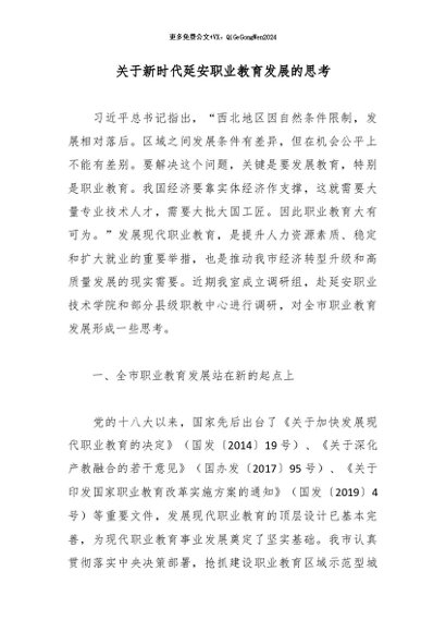 / 【七哥公文】2026年:关于新时代延安职业教育发展的思考_副本+更多免费公文+VX:QiGeGongWen2024