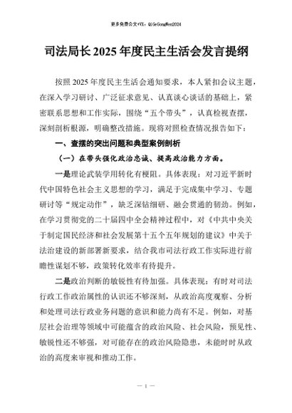 / 【七哥公文】2026年:司法局长2025年度民主生活会发言提纲+更多免费公文+VX:QiGeGongWen2024