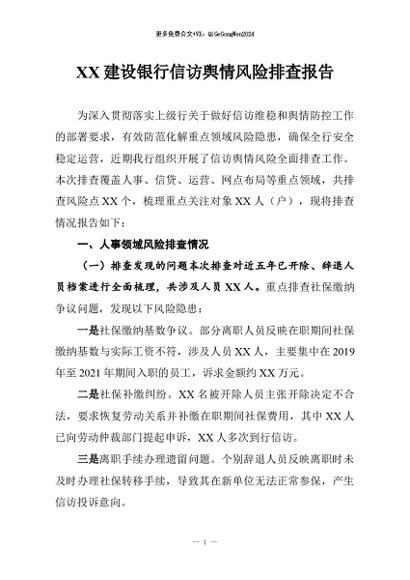/ 【七哥公文】2026年:XX建设银行信访舆情风险排查报告+更多免费公文+VX:QiGeGongWen2024