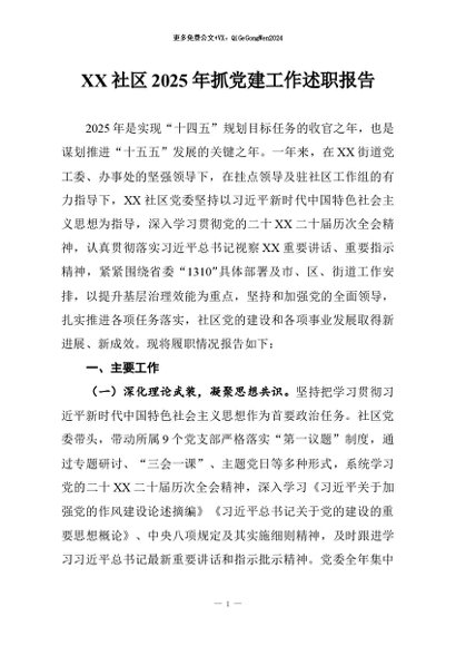 / 【七哥公文】2026年:XX社区2025年抓党建工作述职报告_副本+更多免费公文+VX:QiGeGongWen2024