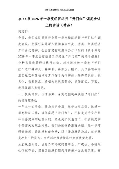 【七哥公文】2026年:在XX县2026年一季度经济运行“开门红”调度会议上的讲话(精品)_副本+更多免费公文+VX:QiGeGongWen2024