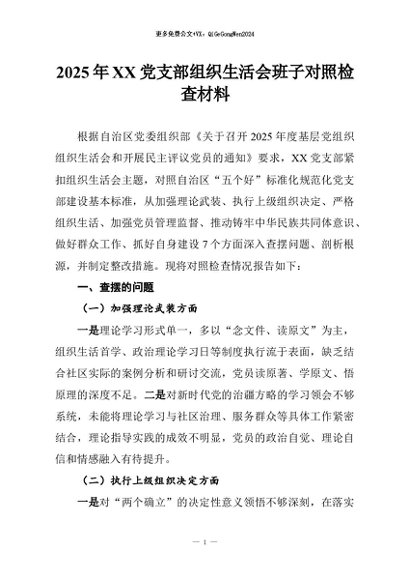 / 【七哥公文】2026年:2025年XX党支部组织生活会班子对照检查材料+更多免费公文+VX:QiGeGongWen2024