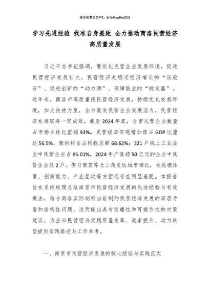 【七哥公文】2026年:学习先进经验 找准自身差距 全力推动商洛民营经济高质量发展_副本+更多免费公文+VX:QiGeGongWen2024