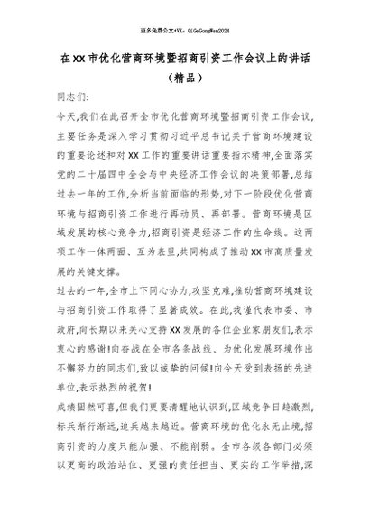 【七哥公文】2026年:在XX市优化营商环境暨招商引资工作会议上的讲话(精品)_副本+更多免费公文+VX:QiGeGongWen2024
