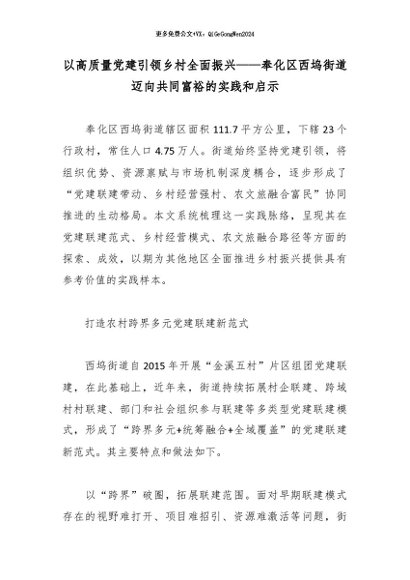 【七哥公文】2026年:以高质量党建引领乡村全面振兴——奉化区西坞街道迈向共同富裕的实践和启示_副本+更多免费公文+VX:QiGeGongWen2024