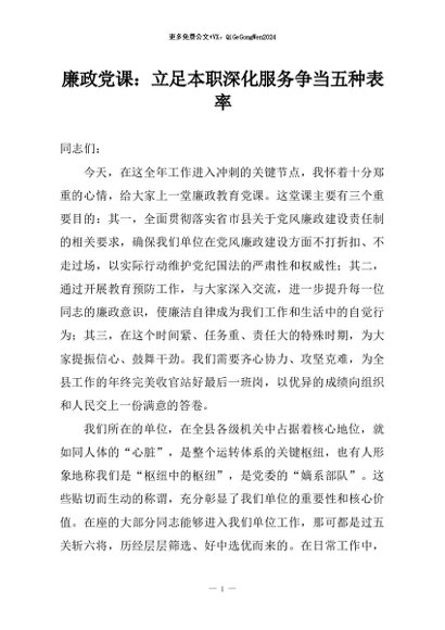 / 【七哥公文】2026年:廉政党课:立足本职深化服务争当五种表率+更多免费公文+VX:QiGeGongWen2024