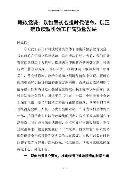 【七哥公文】2026年:廉政党课:以如磐初心担时代使命,以正确政绩观引领工作高质量发展+更多免费公文+VX:QiGeGongWen2024