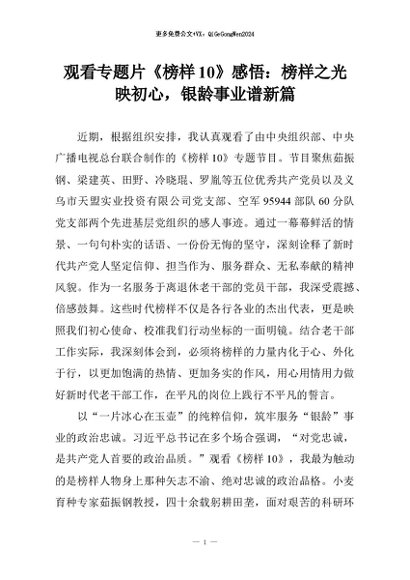 【七哥公文】2026年:观看专题片《榜样10》感悟:榜样之光映初心,银龄事业谱新篇+更多免费公文+VX:QiGeGongWen2024