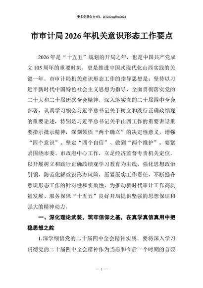/ 【七哥公文】2026年:市审计局2026年机关意识形态工作要点+更多免费公文+VX:QiGeGongWen2024