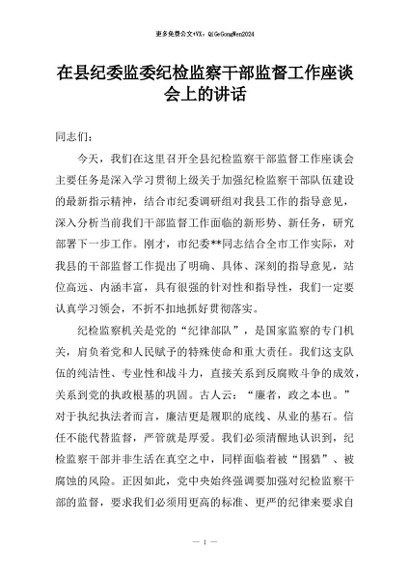/ 【七哥公文】2026年:在县纪委监委纪检监察干部监督工作座谈会上的讲话+更多免费公文+VX:QiGeGongWen2024