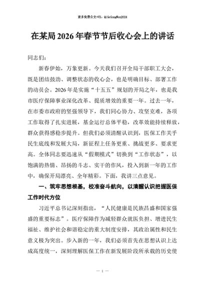 / 【七哥公文】2026年:在某局2026年春节节后收心会上的讲话+更多免费公文+VX:QiGeGongWen2024