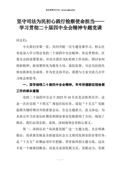 【七哥公文】2026年:坚守司法为民初心践行检察使命担当——学习贯彻二十届四中全会精神专题党课+更多免费公文+VX:QiGeGongWen2024