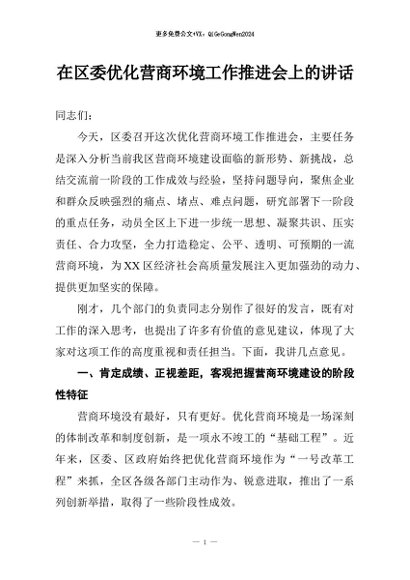 / 【七哥公文】2026年:在区委优化营商环境工作推进会上的讲话+更多免费公文+VX:QiGeGongWen2024