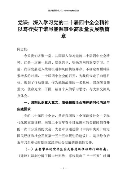 【七哥公文】2026年:党课:深入学习党的二十届四中全会精神以笃行实干谱写能源事业高质量发展新篇章+更多免费公文+VX:QiGeGongWen2024