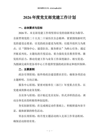 【七哥公文】2026年:2026年度党支部党建工作计划+更多免费公文+VX:QiGeGongWen2024 - 七哥-AI智库