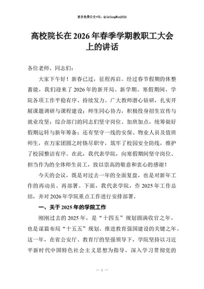 / 【七哥公文】2026年:高校院长在2026年春季学期教职工大会上的讲话+更多免费公文+VX:QiGeGongWen2024