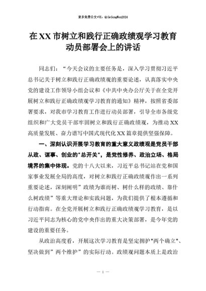 【七哥公文】2026年:在XX市树立和践行正确政绩观学习教育动员部署会上的讲话_副本+更多免费公文+VX:QiGeGongWen2024