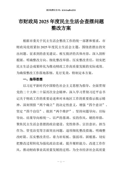 / 【七哥公文】2026年:市财政局2025年度民主生活会查摆问题整改方案+更多免费公文+VX:QiGeGongWen2024