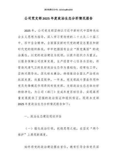 【七哥公文】2026年:公司党支部2025年度政治生态分析情况报告_副本+更多免费公文+VX:QiGeGongWen2024