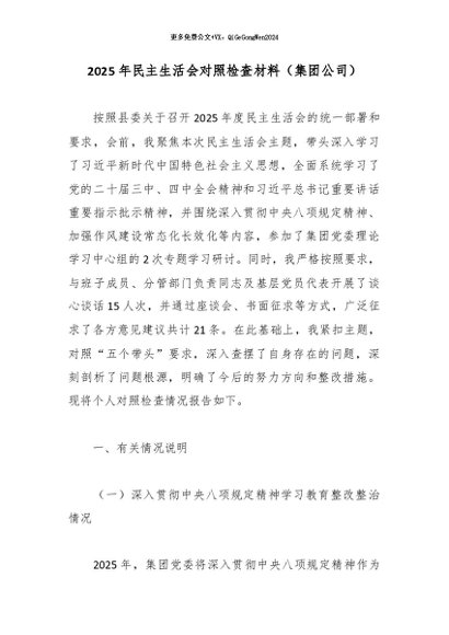 【七哥公文】2026年:2025年民主生活会对照检查材料(集团公司)_副本+更多免费公文+VX:QiGeGongWen2024