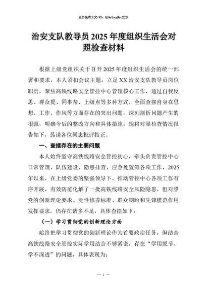 【七哥公文】2026年:治安支队教导员2025年度组织生活会对照检查材料+更多免费公文+VX:QiGeGongWen2024