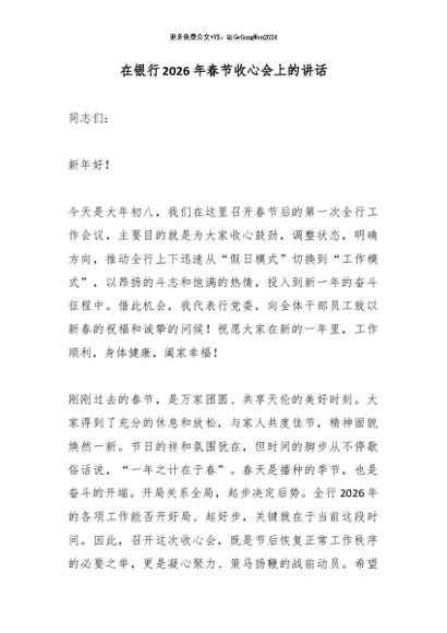 / 【七哥公文】2026年:在银行2026年春节收心会上的讲话_副本+更多免费公文+VX:QiGeGongWen2024