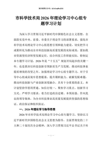 【七哥公文】2026年:市科学技术局2026年理论学习中心组专题学习计划+更多免费公文+VX:QiGeGongWen2024