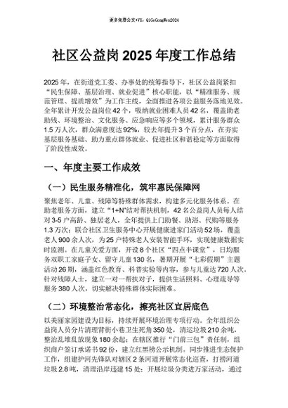 / 【七哥公文】2026年:社区公益岗2025年度工作总结+更多免费公文+VX:QiGeGongWen2024