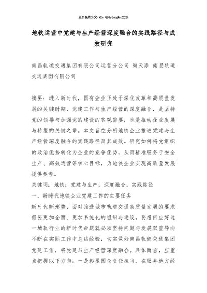 【七哥公文】2026年:地铁运营中党建与生产经营深度融合的实践路径与成效研究_副本+更多免费公文+VX:QiGeGongWen2024
