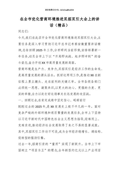 【七哥公文】2026年:在全市优化营商环境推进双招双引大会上的讲话(精品)_副本+更多免费公文+VX:QiGeGongWen2024