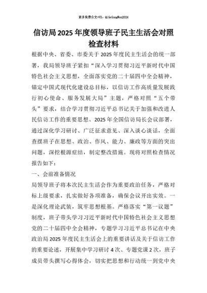 / 【七哥公文】2026年:信访局2025年度领导班子民主生活会对照检查材料+更多免费公文+VX:QiGeGongWen2024