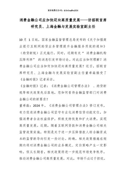 【七哥公文】2026年:消费金融公司应加快迈向高质量发展——访招联首席研究员、上海金融与发展实验室副主任_副本+更多免费公文+VX:QiGeGongWen2024