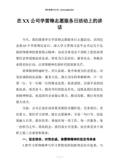 / 【七哥公文】2026年:在XX公司学雷锋志愿服务日活动上的讲话+更多免费公文+VX:QiGeGongWen2024