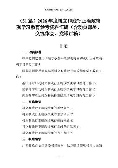 【七哥公文】2026年:(51篇)2026年度树立和践行正确政绩观学习教育参考资料汇编(含动员部署、交流体会、党课讲稿)+更多免费公文+VX:QiGeGongWen2024
