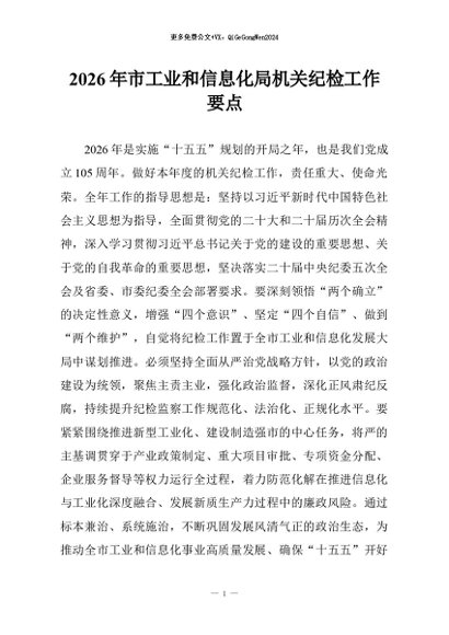 / 【七哥公文】2026年:2026年市工业和信息化局机关纪检工作要点+更多免费公文+VX:QiGeGongWen2024