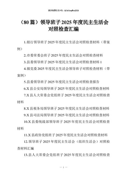 【七哥公文】2026年:(80篇)领导班子2025年度民主生活会对照检查汇编+更多免费公文+VX:QiGeGongWen2024