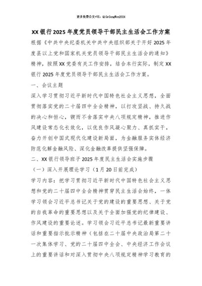 【七哥公文】2026年:XX银行2025年度党员领导干部民主生活会工作方案_副本+更多免费公文+VX:QiGeGongWen2024