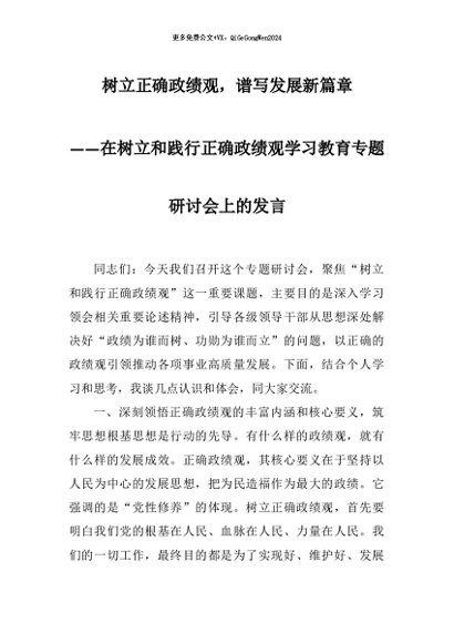 【七哥公文】2026年:在树立和践行正确政绩观学习教育专题研讨会上的发言:树立正确政绩观,谱写发展新篇章+更多免费公文+VX:QiGeGongWen2024