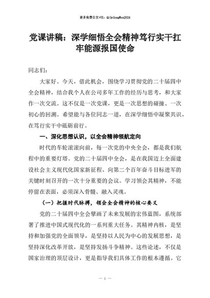 【七哥公文】2026年:党课讲稿:深学细悟全会精神笃行实干扛牢能源报国使命+更多免费公文+VX:QiGeGongWen2024