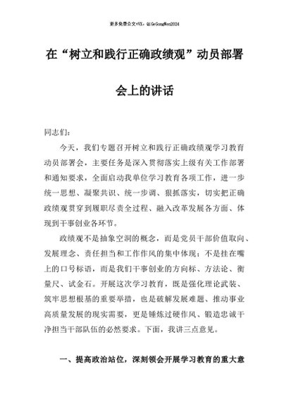 / 【七哥公文】2026年:在“树立和践行正确政绩观”动员部署会上的讲话+更多免费公文+VX:QiGeGongWen2024